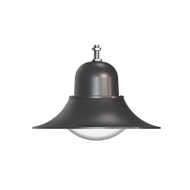 The EBELL is designed for residential and urban lighting, suitable for suspension mounting or installation on lamp post arms. It is equipped with 24 to 48 pcs of 5050 LEDs depending on the size, allowing precise adaptation to project requirements through various color temperatures and photometric distributions, while meeting anti–light pollution standards.The EBELL can be configured with flat, semi-circular, or acorn-shaped bowls. It provides IP66 protection and IK08 impact resistance (up to IK10 with glass cover).